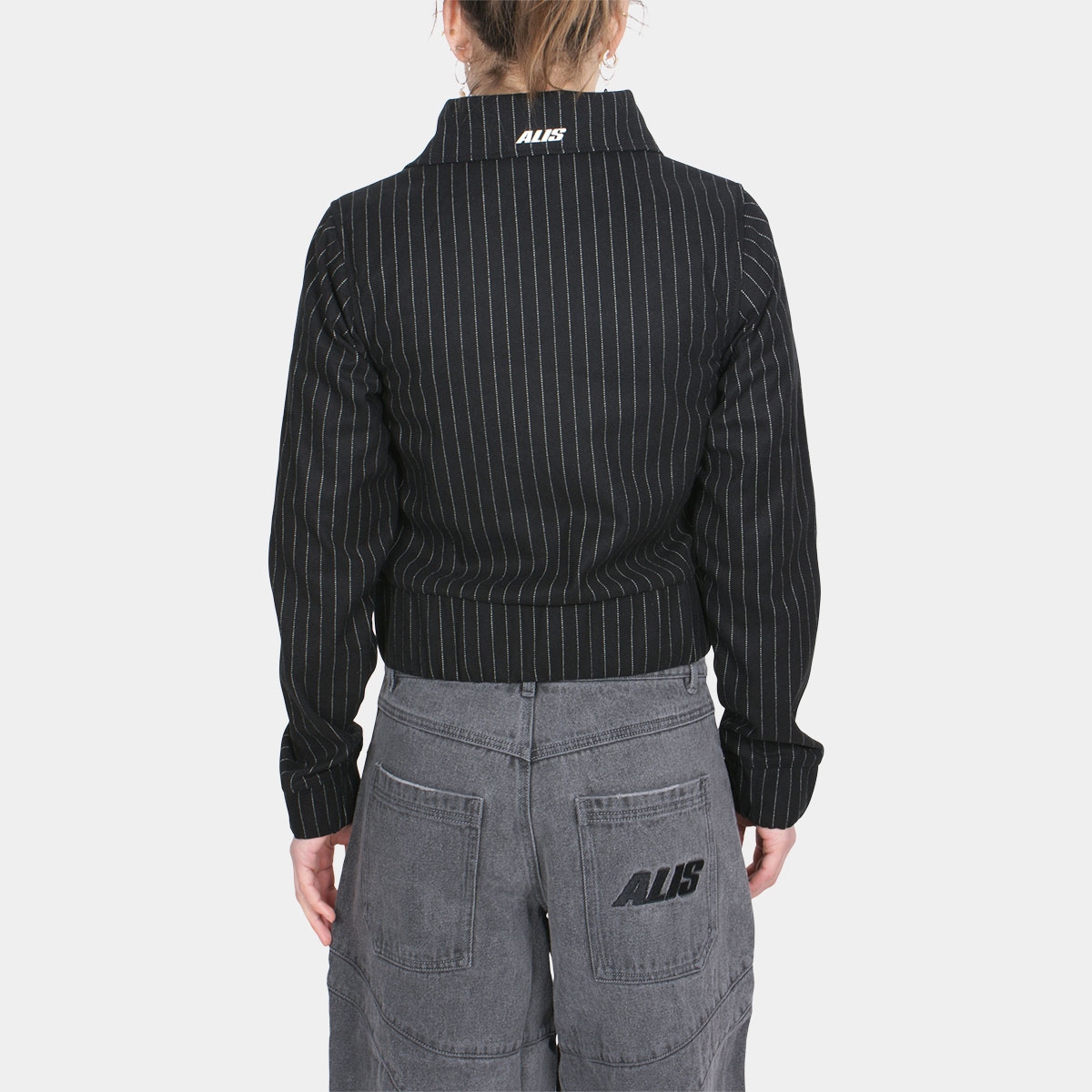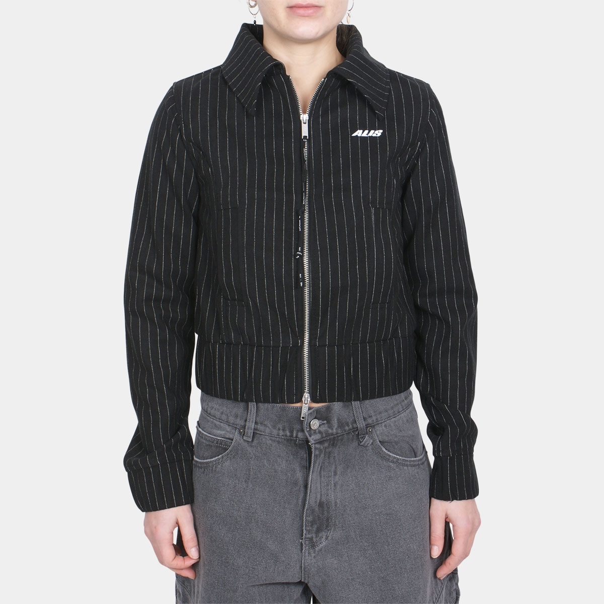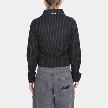 Alis Clarence Short Fitted Jacket Black Pinstripe