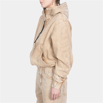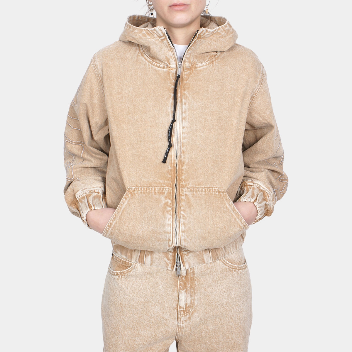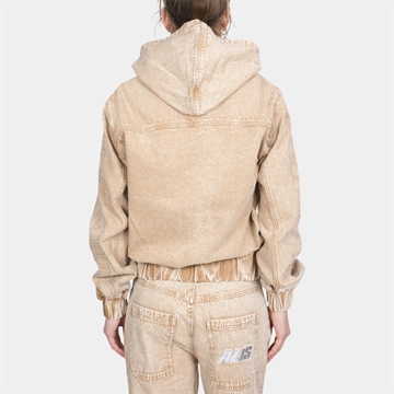 Alis Cochet Hooded Denim Jacket w/Sleeve Embroidery Faded Sand
