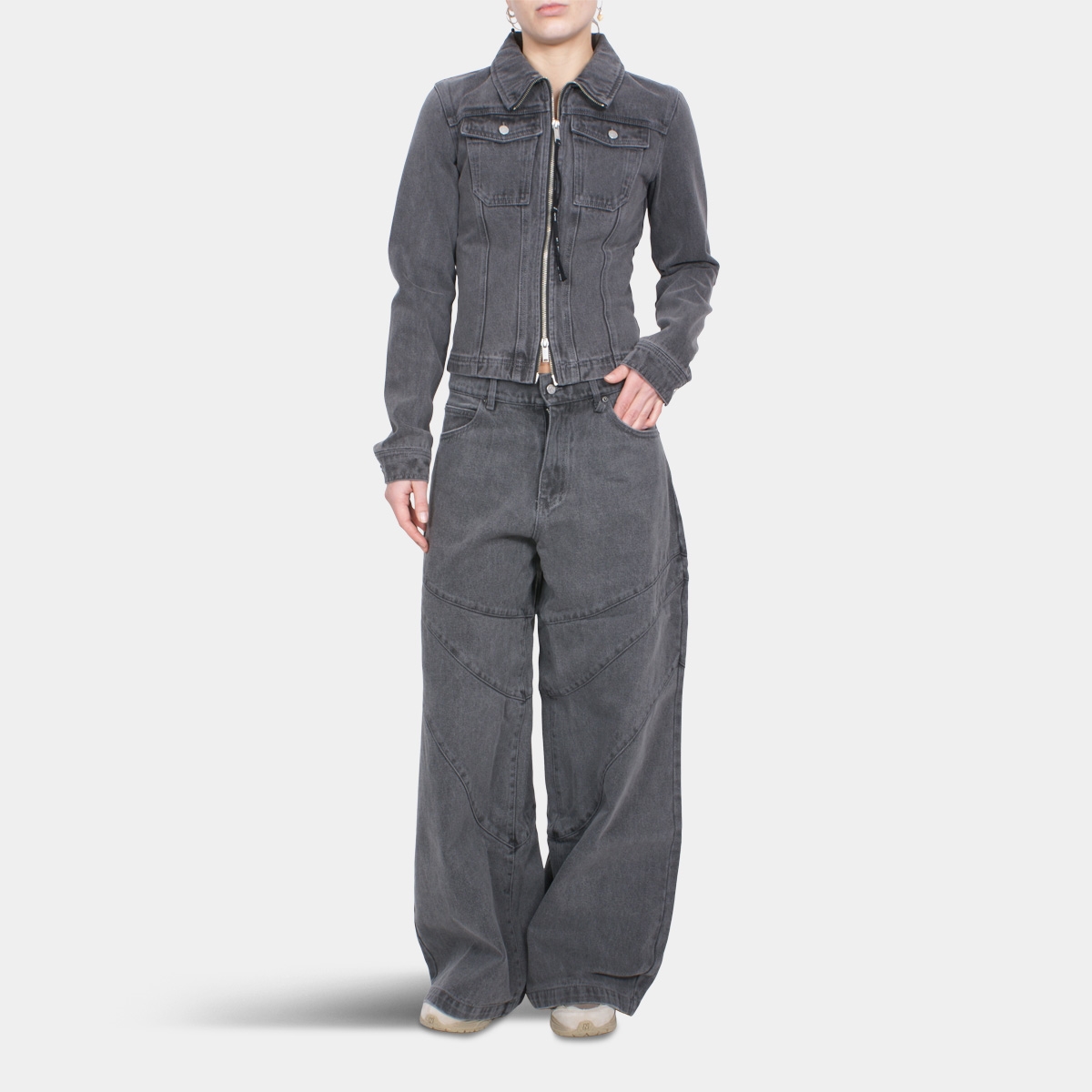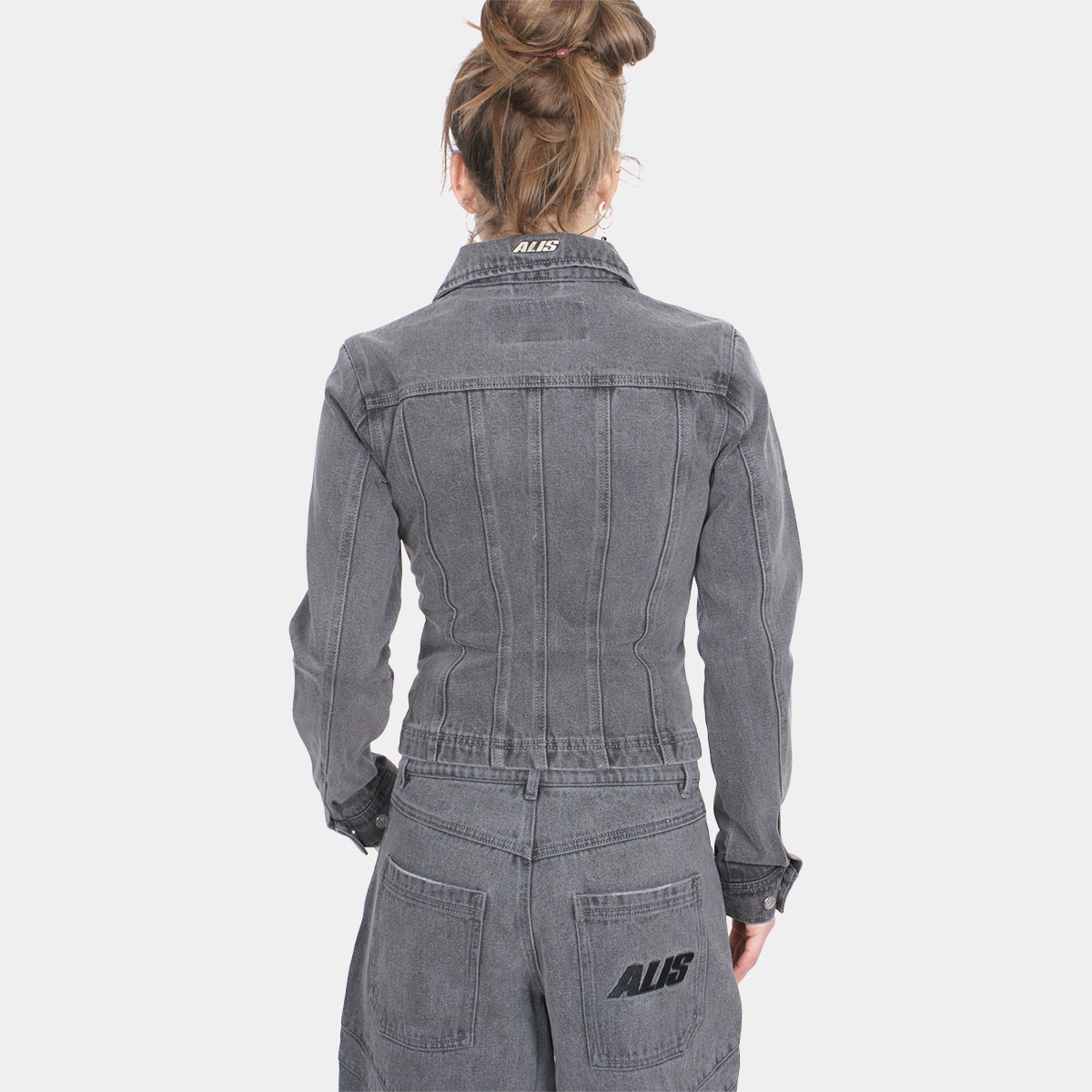 Alis Jenn Short Fitted Denim Jacket Washed Grey