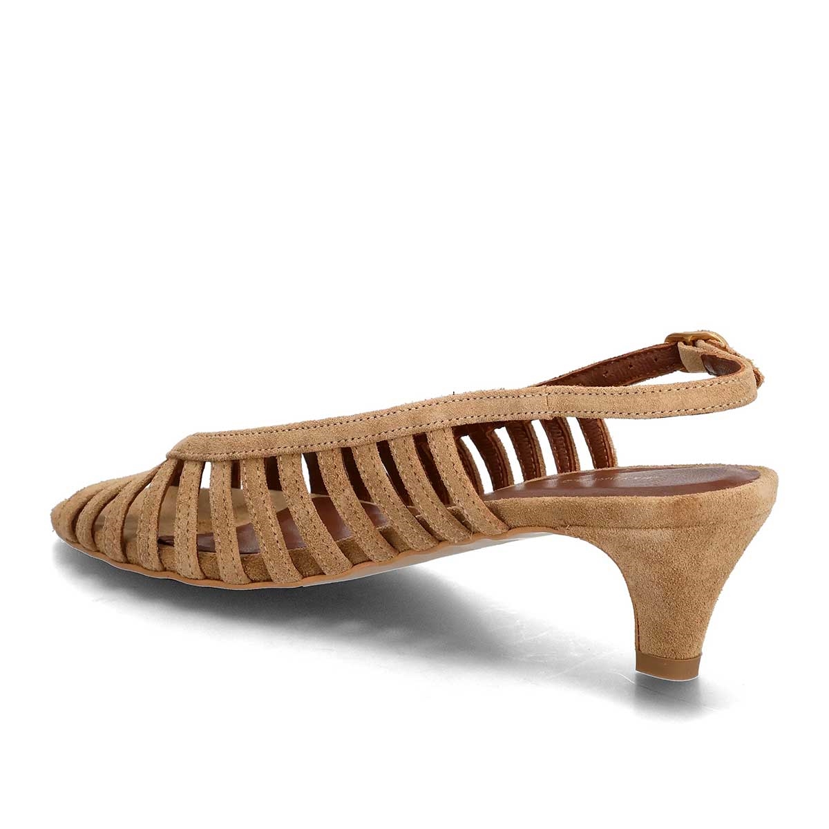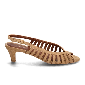 Elegant slingback-sandal med åben tå og raffinerede remdetaljer, der tilfører et sofistikeret udtryk. Den slanke stiletthæl giver et feminint og diskret løft, som gør modellen velegnet til både hverdag og festlige anledninger. Fremstillet i Portugal med fokus på kvalitet, komfort og tidløst design.
