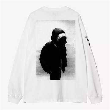 Carhartt WIP langærmet T-shirt - Hvid med Archive Script print, foto rygprint.