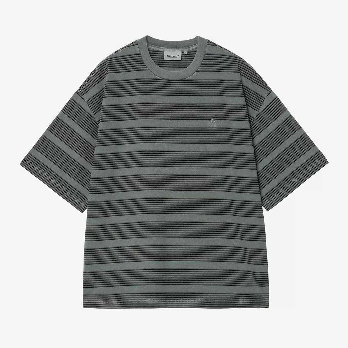 Carhartt WIP T-shirt s/s Hanson Stripe Kale Green Garment Dyed