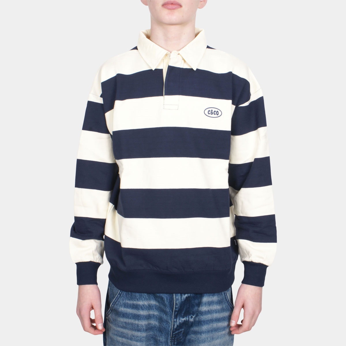 Navy off white stripe
