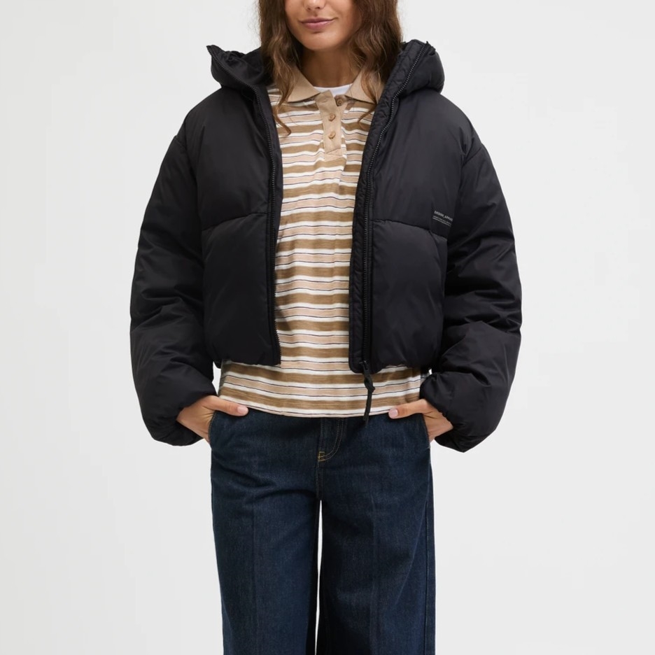 Denne varme, isolerende jakke er perfekt til de kolde vintermåneder. Quiltstof består af to eller flere lag, der er syet sammen for en varm og isolerende fornemmelse. - Produkttype : Dynejakke - Hals : Hætte med snoretræk - Ærme : Lange ærmer - Lukning : Lynlåslukning - Lommer : Forlommer - Længde/størrelse : Kort - For : Polyesterfor for en behagelig fornemmelse - Fyld : Polyesterpolstring for varme