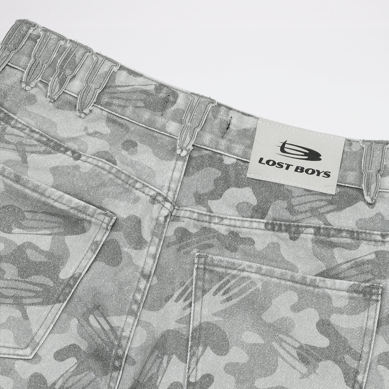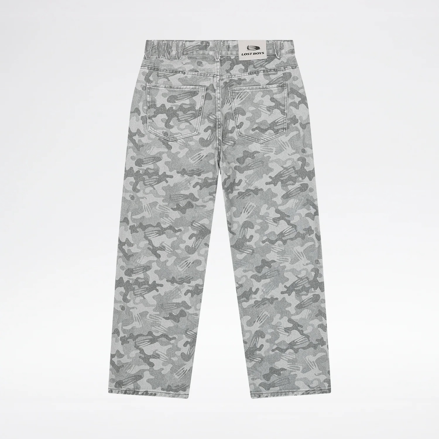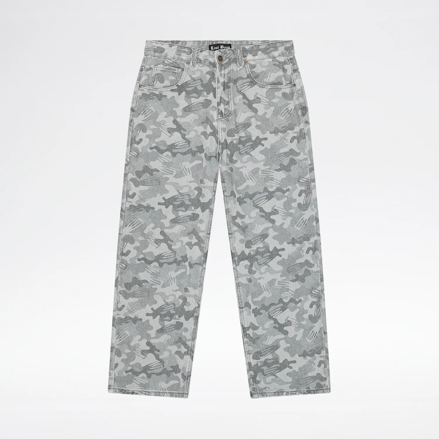 Lost Boys Everyday Camo Jeans - Snow Camouflage • 4 Pockets • Everyday Baggy Fit • Custom Camo • Custom Bullet Beltloops • Custom LBA Buttons & Zipper fly