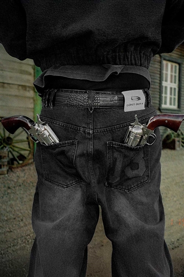 • 16 OZ Sandblasted Denim • 5 Pockets • Custom Bullet Beltloops • Custom LBA Buttons & Zipper fly • Everyday Baggy Fit