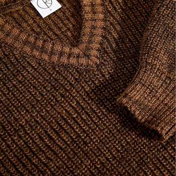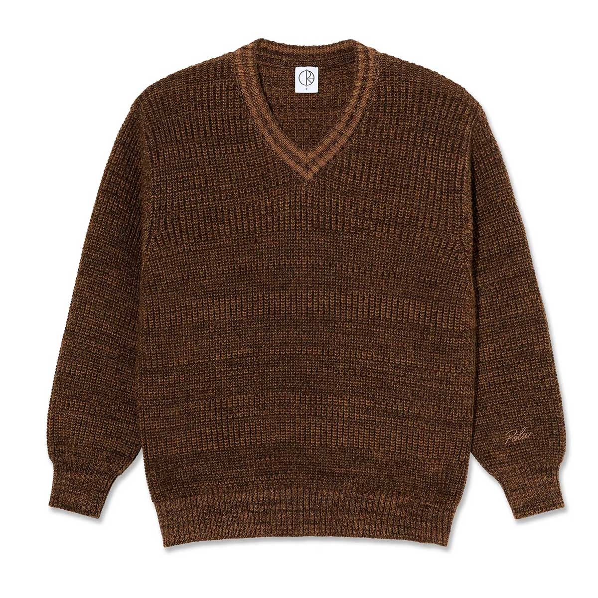 Polar Skate Co strik - Lækker chunky strik sweater - Brun med v-hals og cool detaljer.