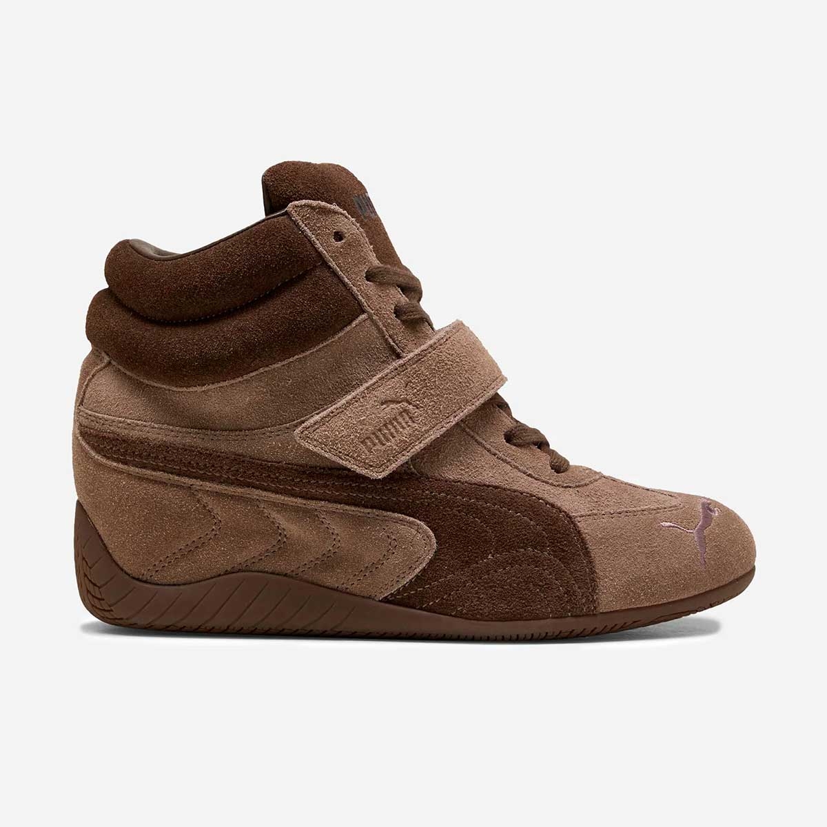 Speedcat Wedge giver et ikon et moderne twist – med en skjult kilehæl og markante velcrostropper for et stilfuldt udtryk. Skoen er fremstillet med raffinerede detaljer og står højere, samtidig med at den bevarer sin karakteristiske strømlinede form.