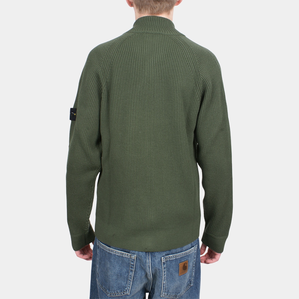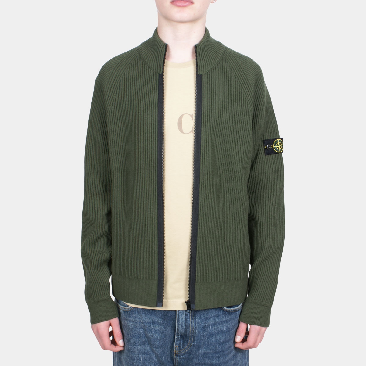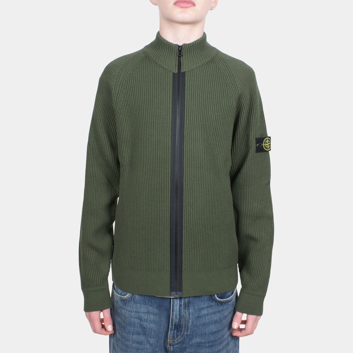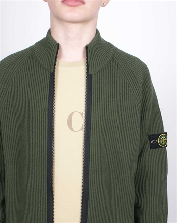 Stone Island Junior cardigan - military green med det ikoniske patch logo på venstre ærme.