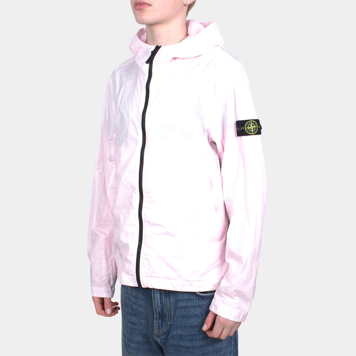 Stone Island Junior jakke i den klassiske Crincle windbreaker kvalitet, med Stone Island patch logo på venstre ærme. Farve : Pink.
