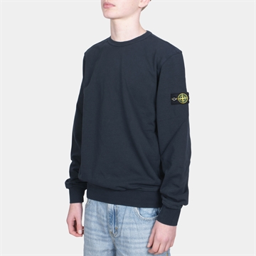 Navy blå Stone Island Junior sweatshirt med det klassiske Stone Island button on patch logo på venstre ærme.