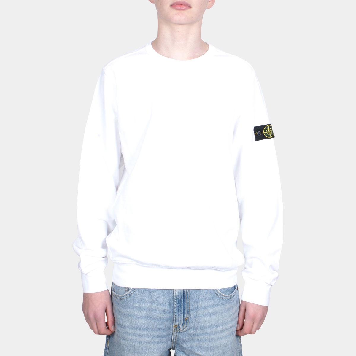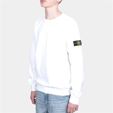 Hvid Stone Island Junior sweatshirt med det klassiske Stone Island button on patch logo på venstre ærme.