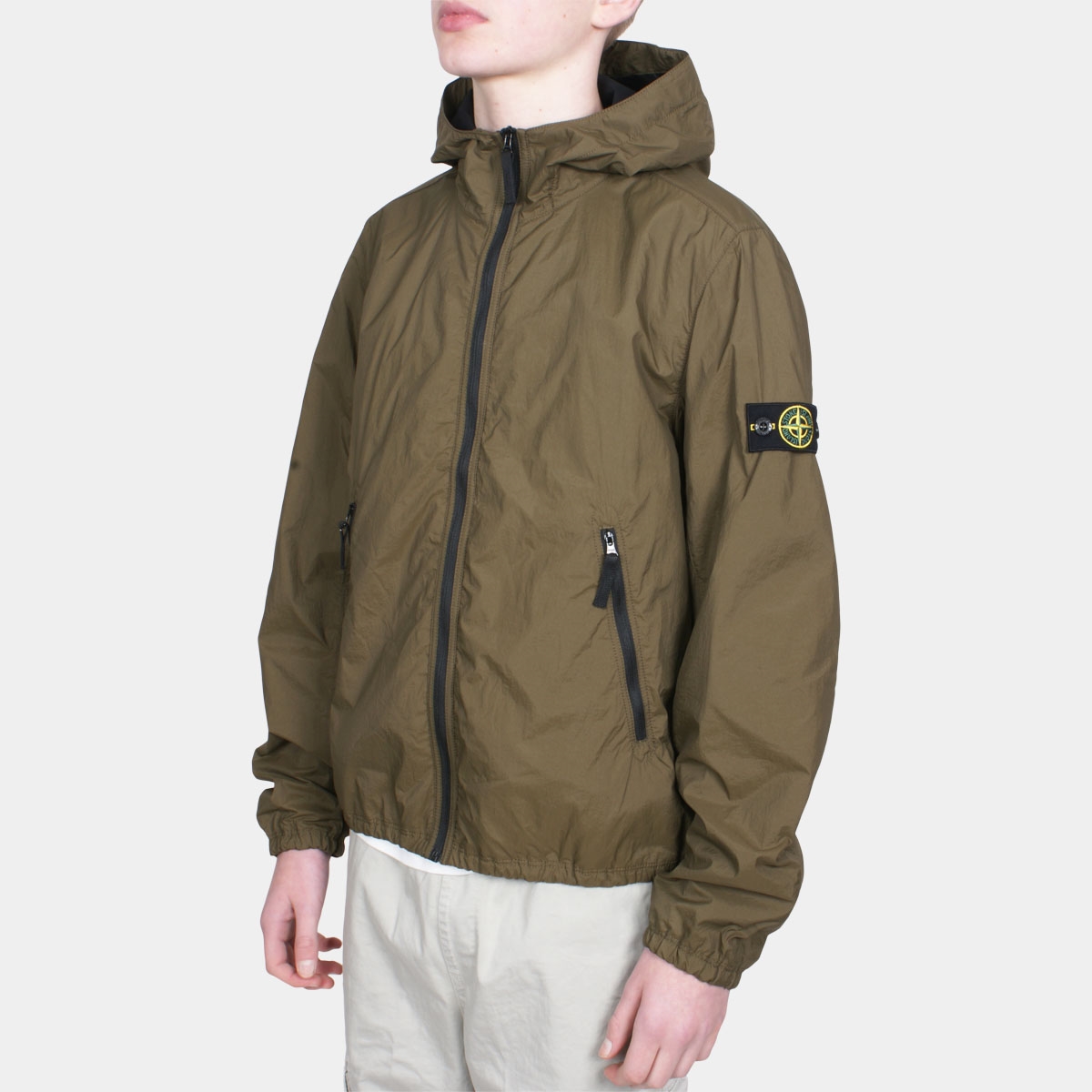 Stone Island Junior jakke i den klassiske windbreaker kvalitet, med Stone Island patch logo på venstre ærme. Farve : Military Green.