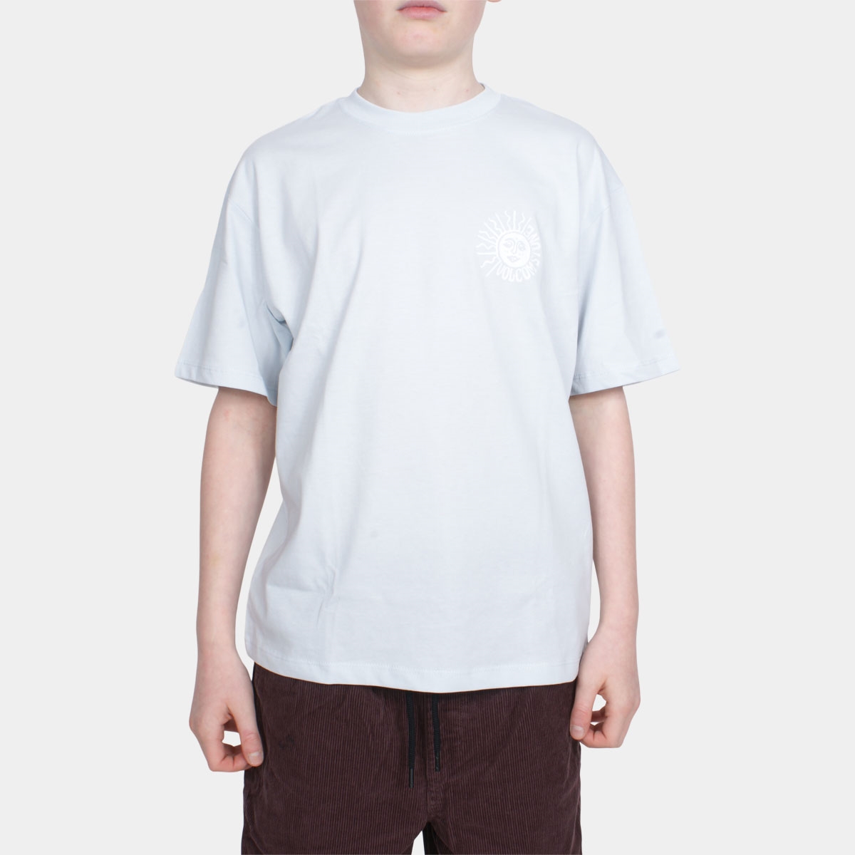 Volcom junior lys blå t-shirt med print på bryst og ryg.