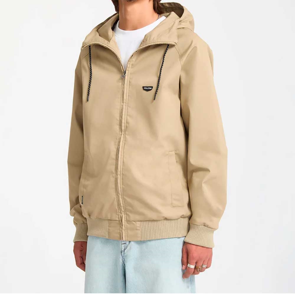 Egenskaber: ● Mellemvægt hættejakke til mænd ● Moderne pasform ● Vandafvisende: 10.000 mm ● Teflon EcoElite™ ● Non-PFC DWR-behandling ● Lynlåslukning foran ● Håndlommer foret med børstet tricot ● Volcom-patch på brystet og Volcom-flaglabel ● Fremstillet med mindst 65 % Repreve™ genanvendt polyester ● Meshfor i 100 % polyester ● Længde i str. M (fra skulder til bund): 74 cm