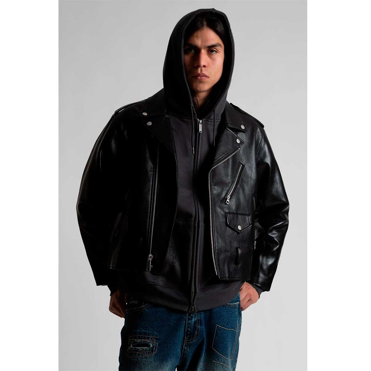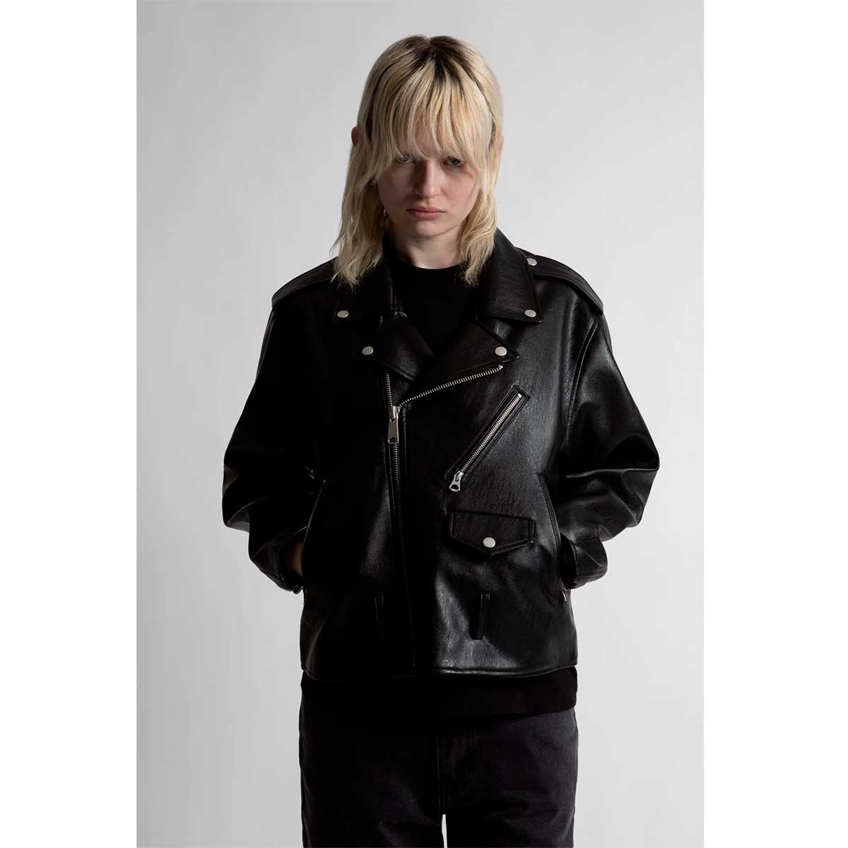Biker Jacket Taunt is a perfecto jacket in faux leather, with an embossed 'against perfection' logo and satin embroidery on the back. Perfecto Cut Embossed logo and satin stitch logo on the back Outer: face: 100% polyurethane - base: 84% polyester, 13% cotton, 3% viscose / Lining: 100% cotton