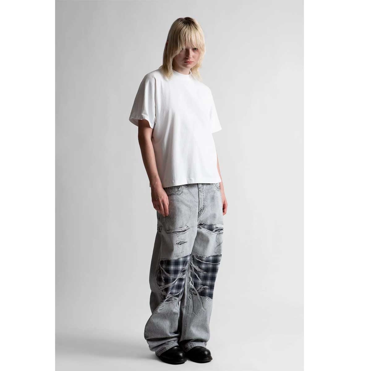 Trompe L'oeil Grant Jean is an ultra baggy cut denim jean, with an all-over digital trompe l'oeil print, replicating a ripped effect.