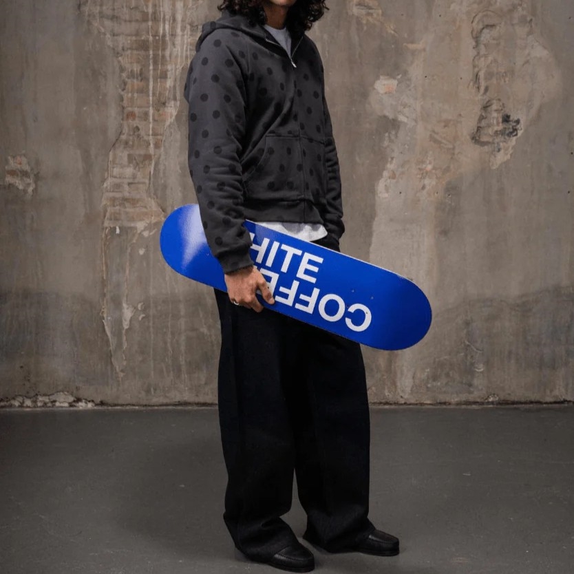 White Coffee Logo Deck Blue