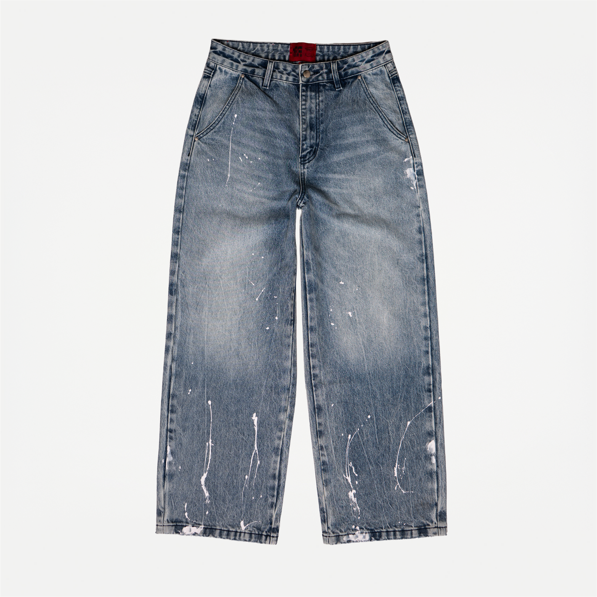 White Coffee Painted Denim Jeans Blue Heavy Used Wash - Sælges kun i butikken i Holstebro